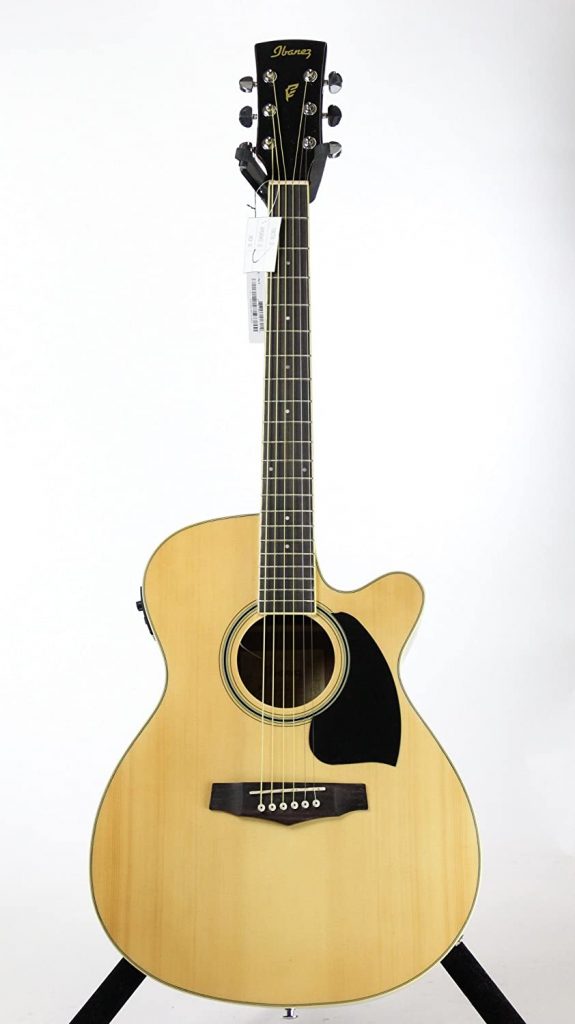 We were rather surprised by Ibanez’s PS15ECENT acoustic-electric guitar. Not that you wouldn’t expect anything other than amazing from them, but the instrument is pretty cheap for its quality. This guitar has the so-called “grand concert” shape, which adds more volume and resonance. The top is made of spruce, while the sides and the back are from mahogany. The neck is also made from mahogany and has a nandu fretboard. Compared to the basic version, the PC15, this guitar also has an onboard AEQ-2T preamp with a pickup. Also, it has a nicely designed cutaway that helps you reach higher frets more easily.